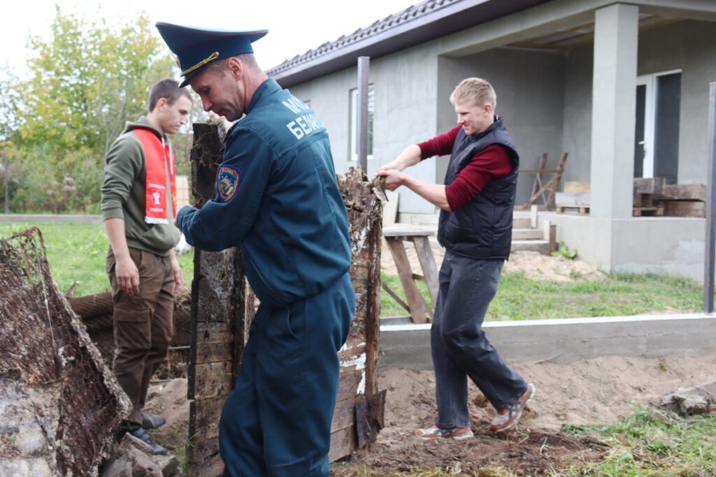 Работники МЧС совместно с активистами Белорусской молодежной общественной организации спасателей-пожарных, бойцами молодежного отряда охраны правопорядка из Жодинского государственного колледжа и членами БРСМ помогают пенсионерам и инвалидам справиться с сезонными работами: убирают сухую листву, вывозят мусор, подрезают кустарники, заготавливают дрова и устанавливают автономные пожарные извещатели.