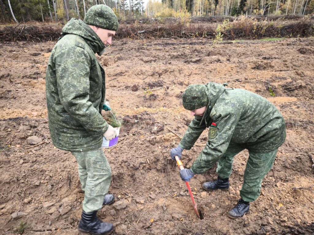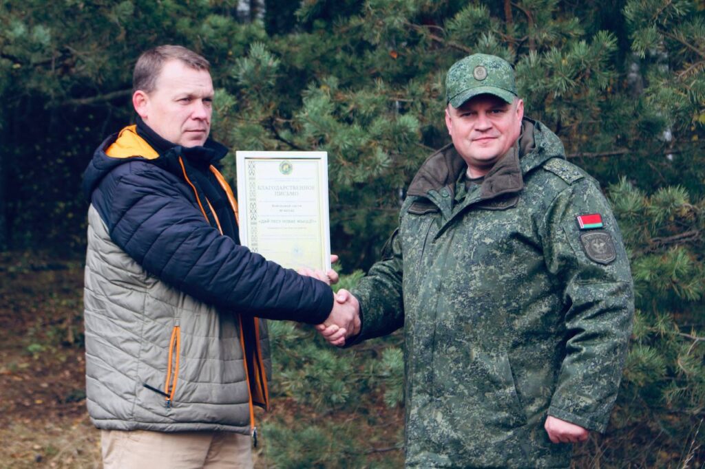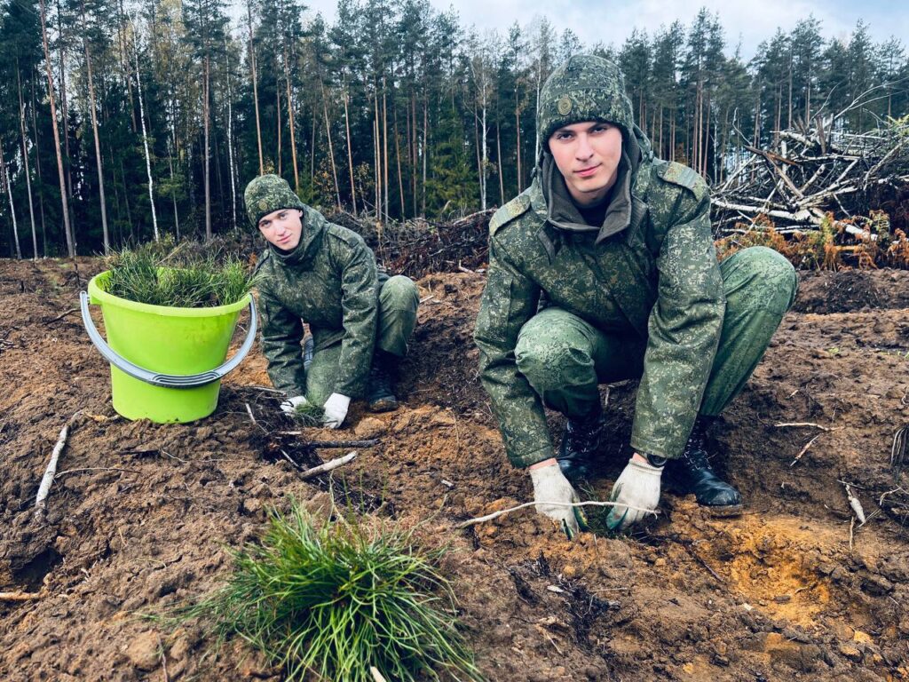 Вместе с представителями Жодинского лесничества Смолевичского лесхоза они высадили 10 000 молодых сосен на участке площадью 1,5 гектара — там, где лес пострадал от бурелома и ветровала.
