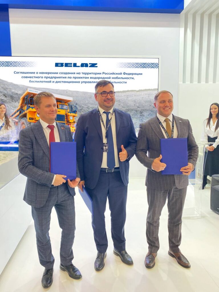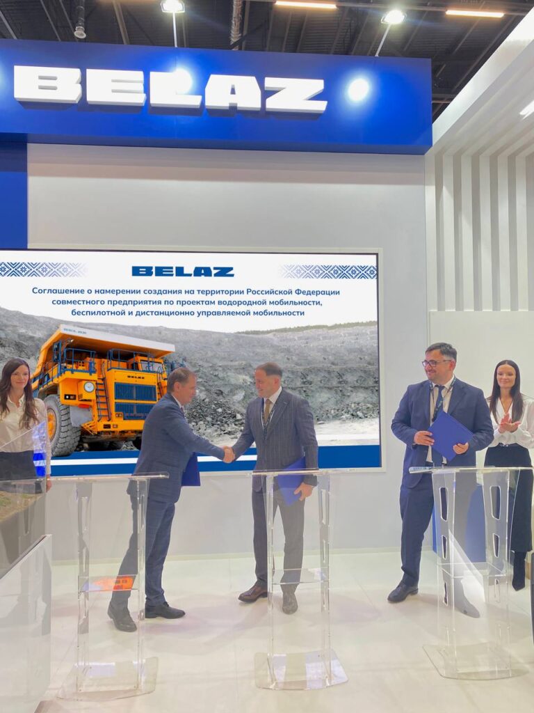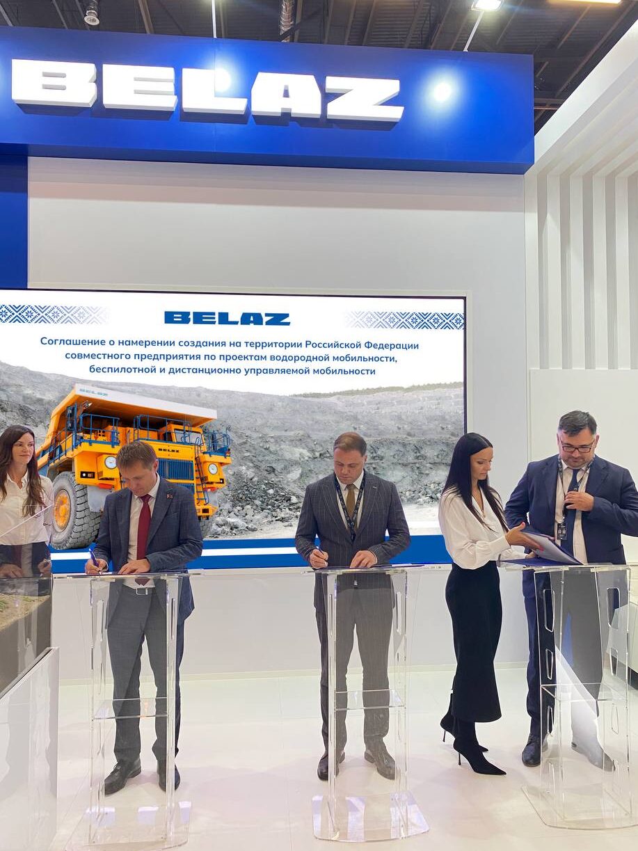 Соглашение о создании белорусско-российского совместного предприятия, которое сосредоточится на создании инновационных беспилотных и водородных самосвалов БЕЛАЗ, подписано на полях международной промышленной выставки «ИННОПРОМ. Беларусь», сообщает БЕЛТА.