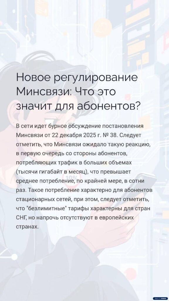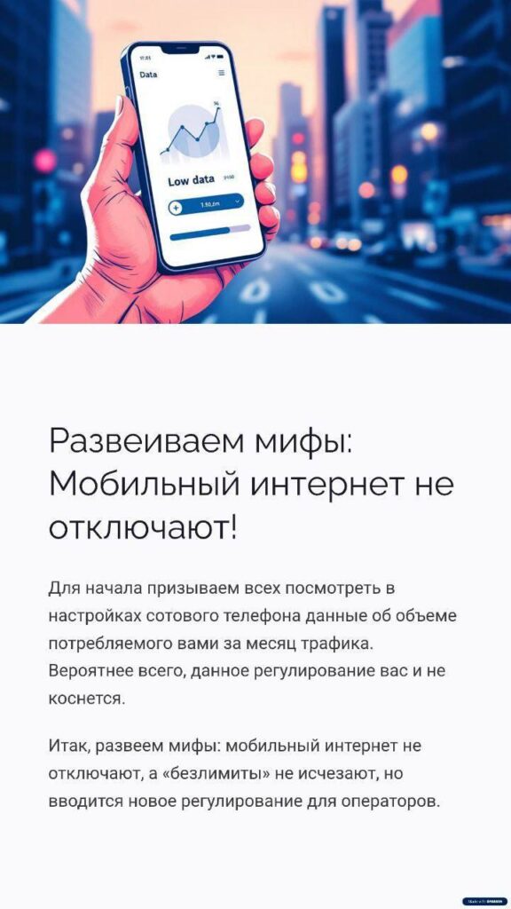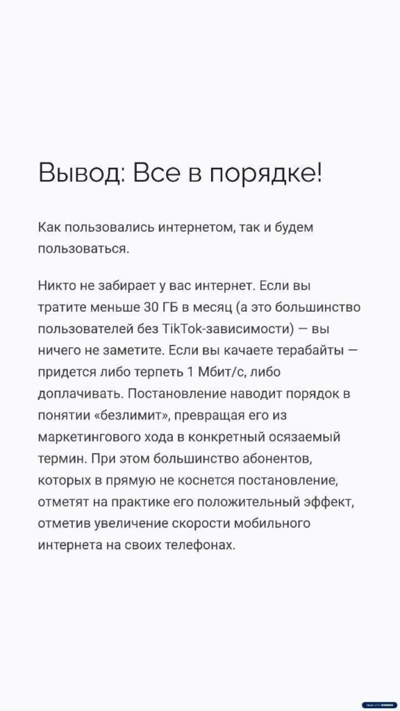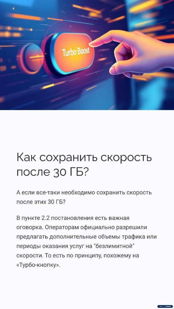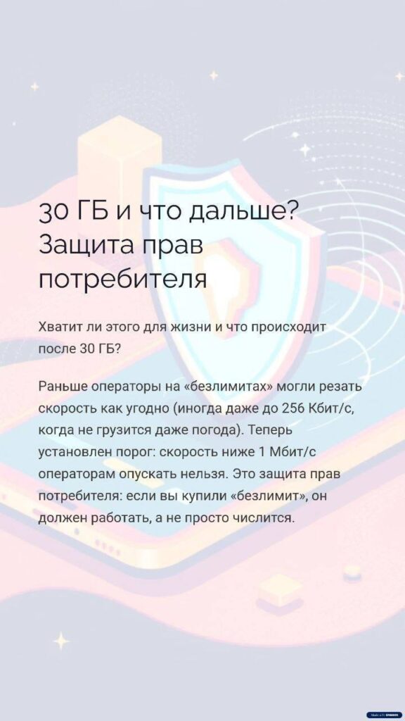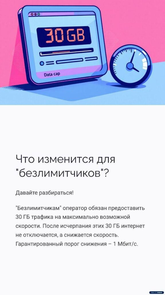 С 2026 года для абонентов с безлимитными тарифами вводится гарантированный начальный объём интернета — 30 ГБ в месяц. После расхода трафика скорость снизится до 1 Мбит/с.