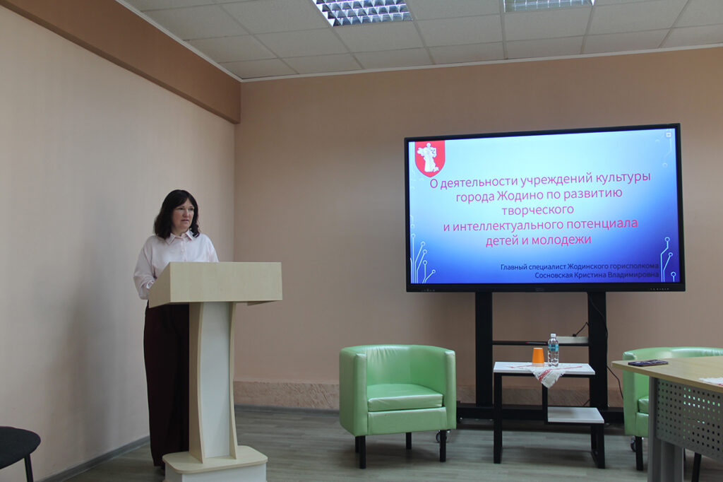 Главный специалист Жодинского горисполкома Кристина Сосновская рассказала о работе учреждений культуры: Детской школы искусств, Детской художественной школы искусств, Центра культуры и досуга, Краеведческого музея и городской библиотеки по привлечению подростков в досуговую деятельность, о новых интересных проектах и проводимых культурных мероприятиях в городе.