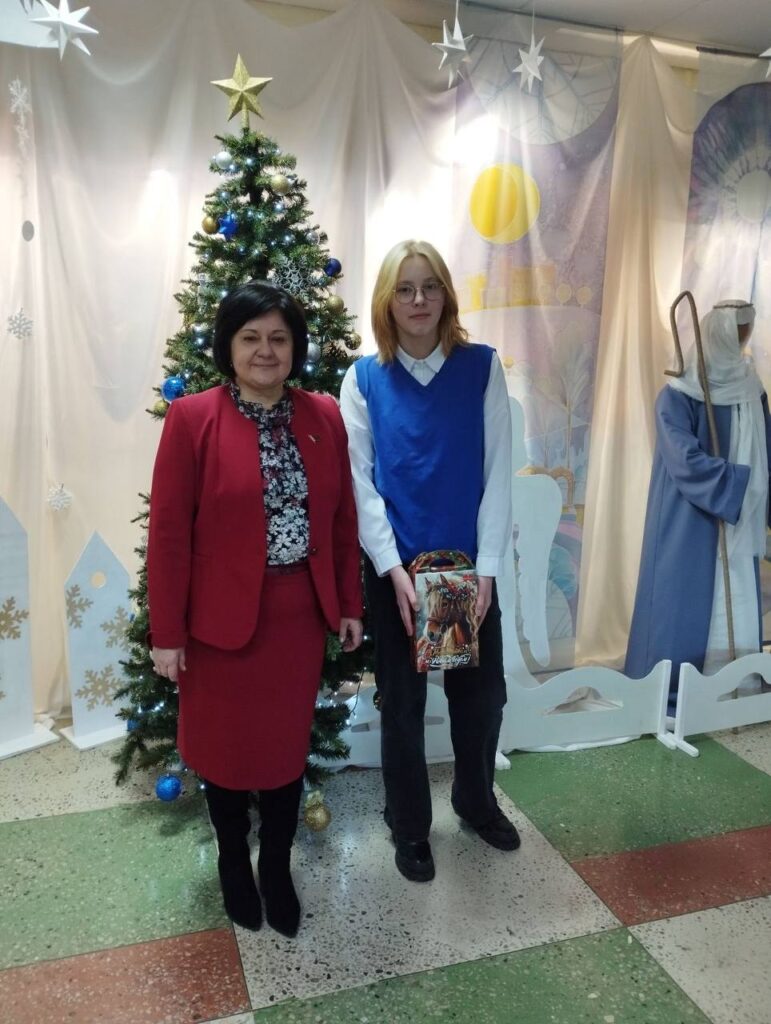 Депутат Минского областного Совета депутатов, главный врач ЦГБ Татьяна Никифорова поздравила ученицу СШ N8 Алину Лис.
