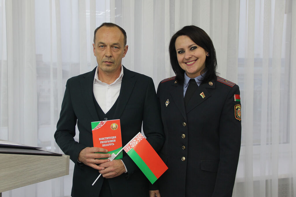 — Получение гражданства — это испытание для гражданина: кропотливый сбор и подача документов, выход из гражданства, которое у него имелось. Финишная прямая этого испытания — торжественное принятие присяги. Человек, который ее пересекает, понимает, что добился того результата, который перед собой ставил. Гражданство не только налагает определенные обязанности, но и наделяет правами, в том числе — участие в выборах и принятии других важных решений на благо страны, — пояснила начальник отделения по гражданству и миграции милиции общественной безопасности отдела внутренних дел Жодинского горисполкома майор милиции Татьяна Капитонова.