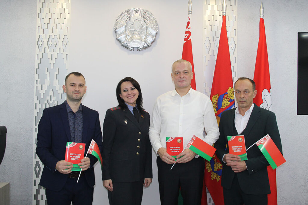 Новоиспеченным гражданам Татьяна Капитонова вручила памятные сувениры и главный Закон Республики Беларусь – Конституцию.