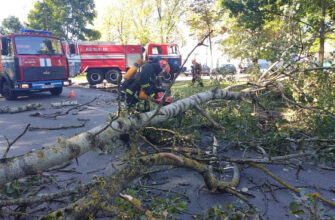 Согласно легенде ураганный порыв повалил деревья на ул.