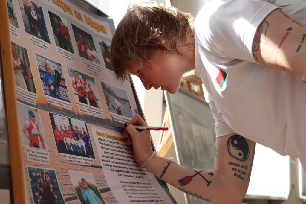Сотрудники краеведческого музея подготовили интересную презентацию о карьере Ольги Климовой: от первых шагов в спортивной школе до триумфальных выступлений на мировых аренах. На стендах можно было увидеть и фотографии выдающегося тренерского тандема – Михаила Элимелаха и Николая Астапковича, которые основали школу гребли на байдарках и каноэ в Жодино.