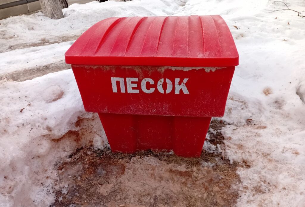 В ЖКХ пояснили, что во всех микрорайонах города установлены специальные контейнеры с песком. Это делается для того, чтобы дворники могли быстро и эффективно проводить противоскользящие работы у подъездов и дорожек в зимний период.