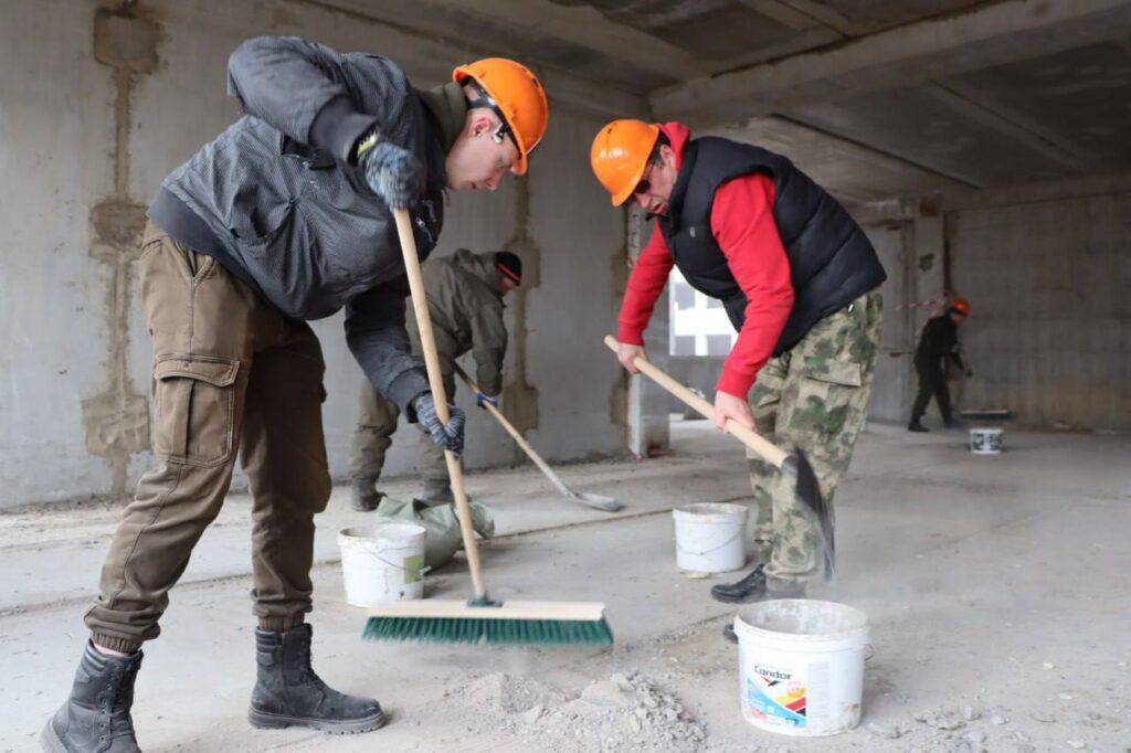 На областном субботнике актив Жодинского горисполкома во главе с Александром Цивако и представители силового блока трудились на строительстве новой школы в 8-м микрорайоне, рассчитанной на 930 учеников.