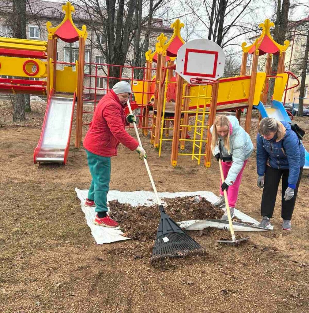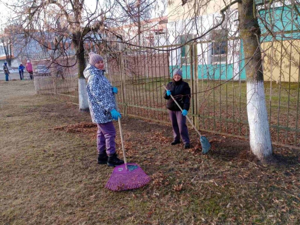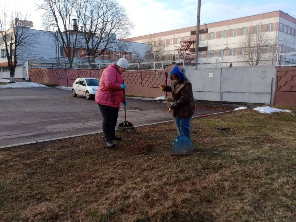 Вместо швейной машинки — грабли и метлы. Свитанковцы вышли на весенний субботник