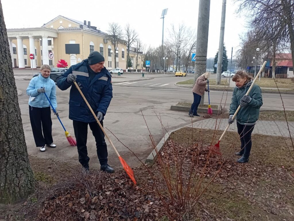 Работники ОАО «Світанак»на деле доказали, что они за чистоту родного города, и вышли на уборку территории на ул. 8 Марта.