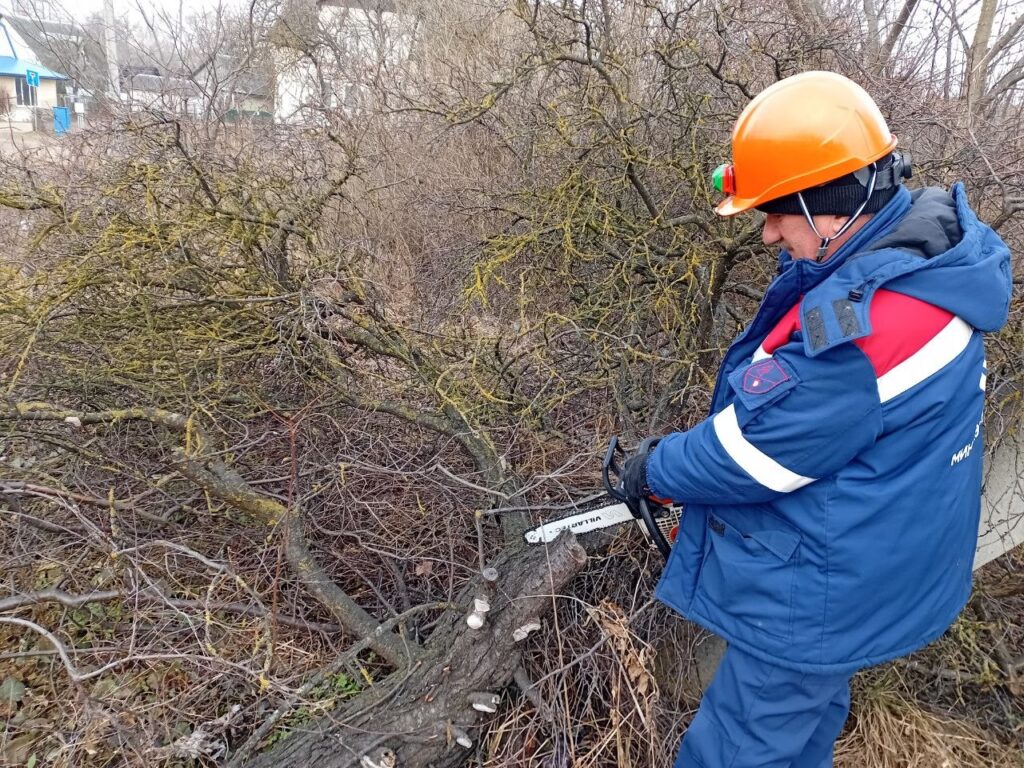 Работники Энергосбыта убирали мусор и листья на улице Деревянко.