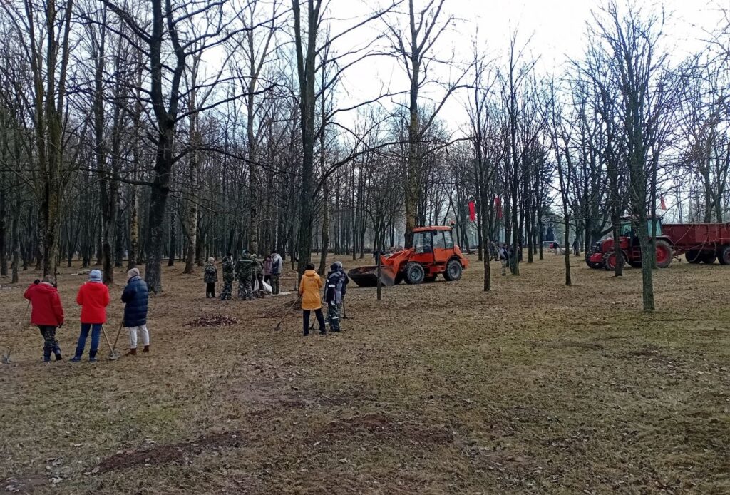 В НПЦ по земледелию знают толк в чистоте. Работа здесь кипела с самого утра: убирали мусор, прошлогоднюю листву рядом со зданием и вдоль обочины дороги.