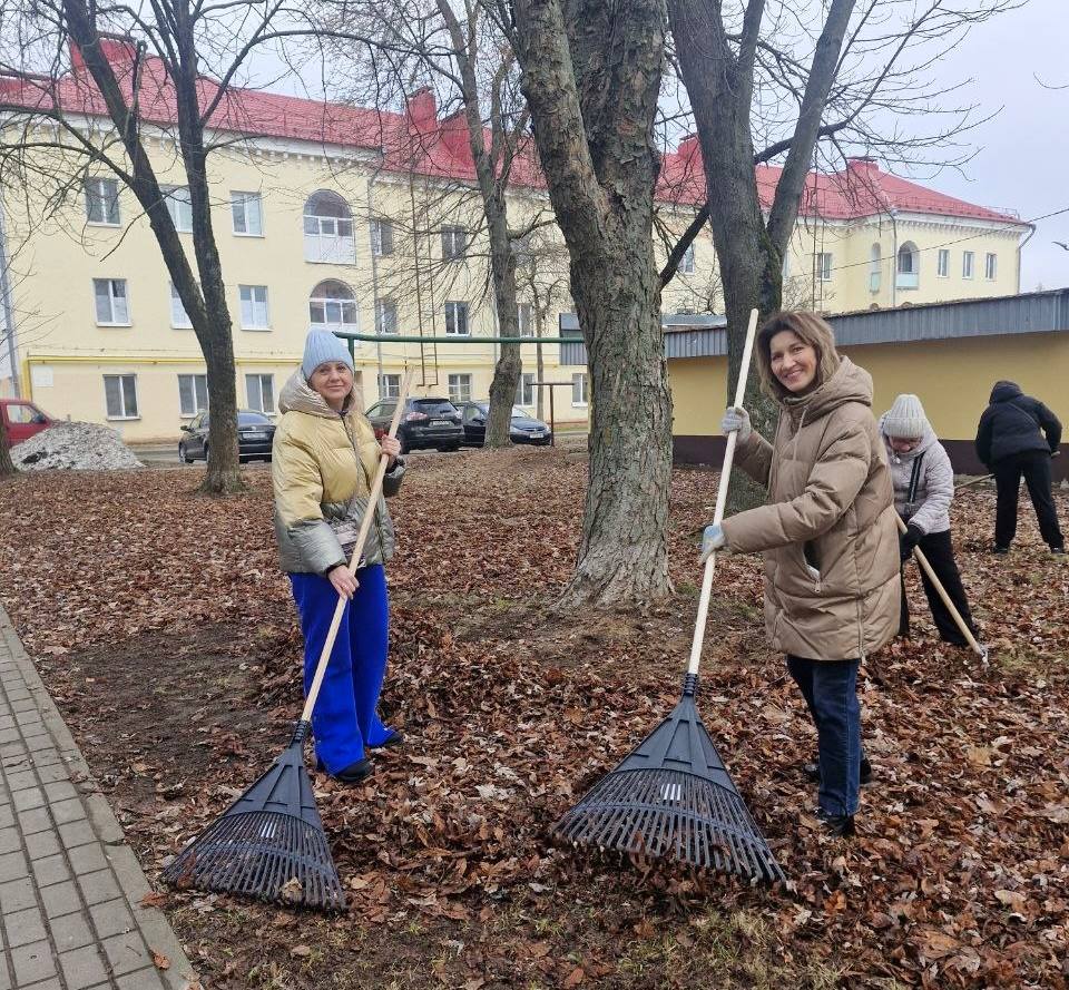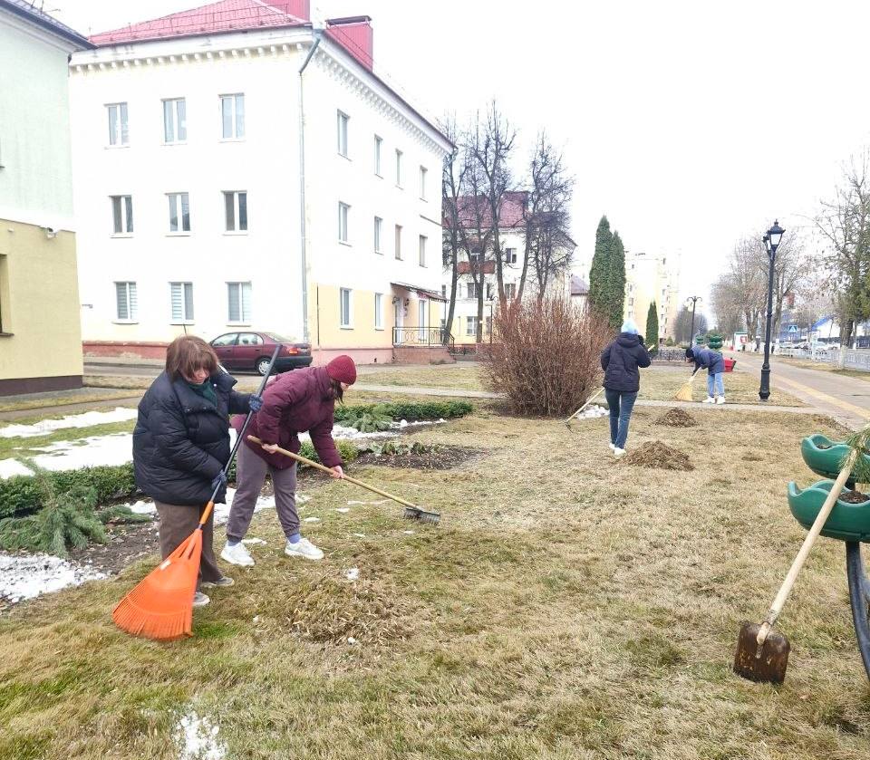 Женская половина горисполкома наводила порядок возле здания городской администрации на ул. 40 лет Октября. Убирали зеленую зону от старой травы, листвы, мусора. Также подготовили к весне территорию детской площадки и убрали дворовую территорию в районе дома N3 на ул. Cырокваша.