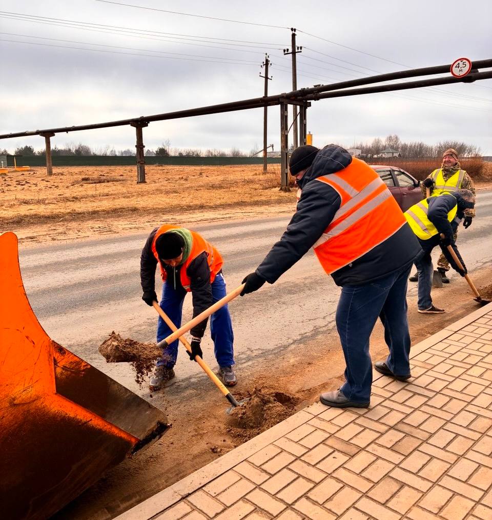 КЗТШ в деле: очистка обочины дороги вдоль улицы Советской шла полным ходом. На разных участках этой локации трудились более 40 человек.
