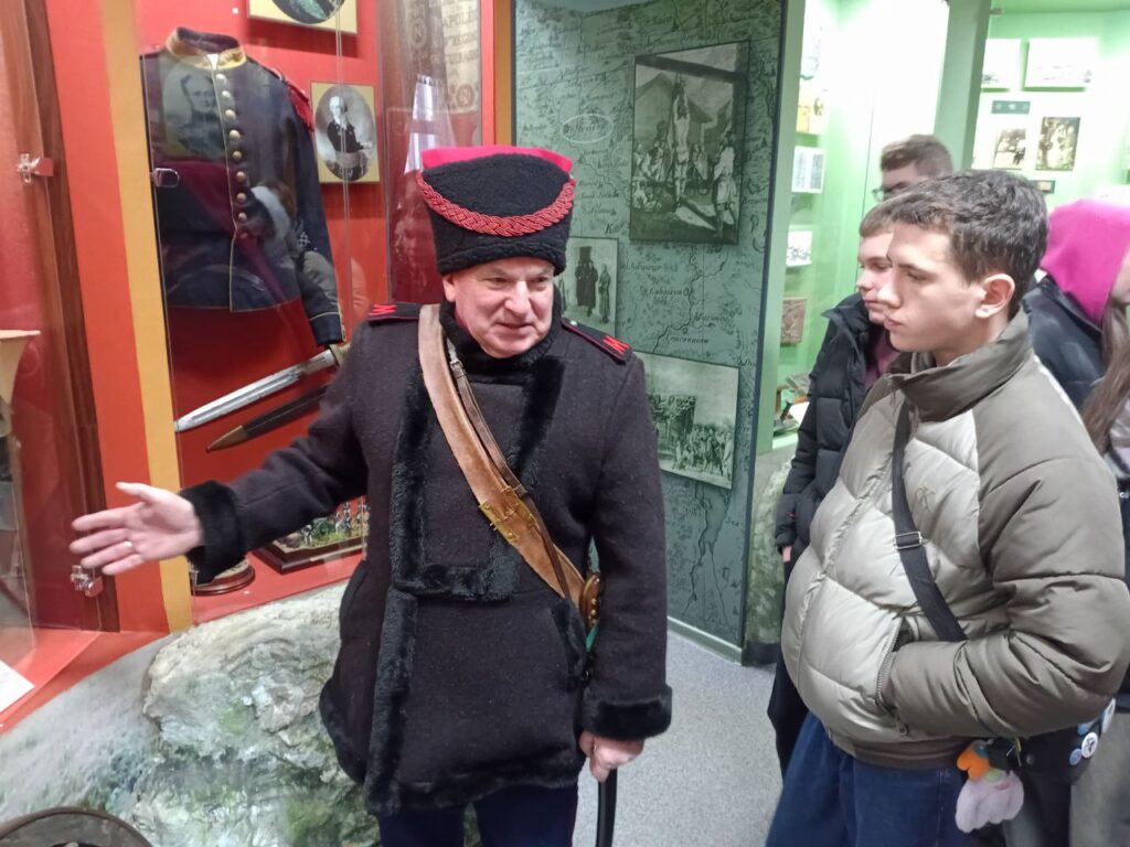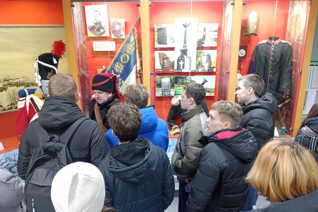 Ребята из объединения по интересам «Щит» посетили краеведческий музей, где увидели уникальный экспонат – навершие с древка французского знамени в виде орла. Артефакт случайно нашли в русле реки Лошицы в 1963 году. Оригинал хранится в условиях повышенной безопасности, а публике его показывают только один раз в год – в день реконструкции.