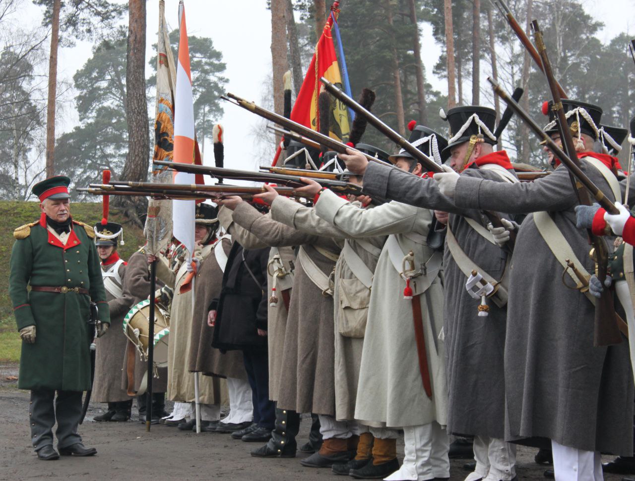 Как и 213 лет назад, холодный ноябрьский воздух прорезал звук охотничьего рожка, потом в бой вступила пехота, началась перестрелка. Пронзительный свист – и мощный взрыв поднял в небо столб дыма. Люди восторженно загудели, в толпе стали слышны одобрительные возгласы.