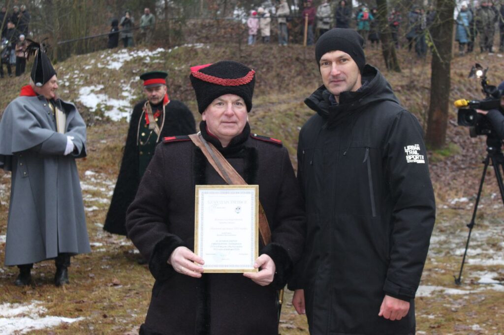 Заместитель председателя Борисовского райисполкома Егор Мандрик вручил Юрию Шинкевичу Благодарственное письмо за активное участие в мероприятиях, посвященных 213-й годовщине событий войны 1812 года «Березина-2025».