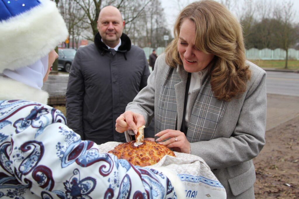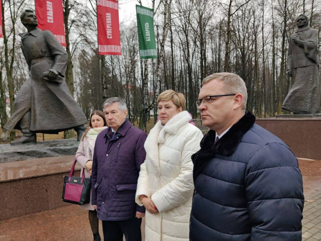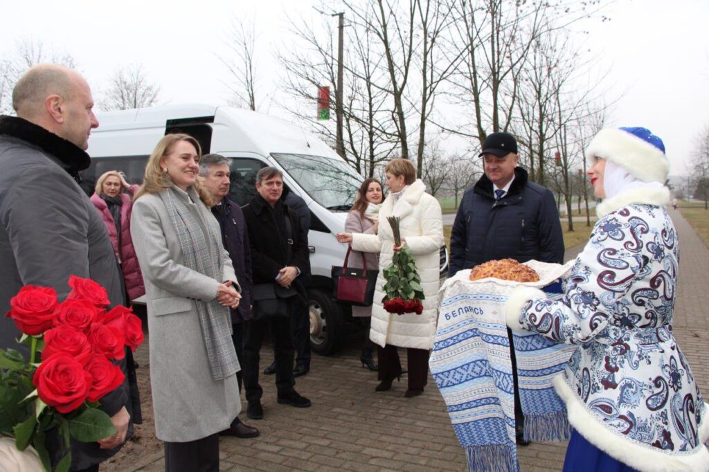 По традиции гостей встретили хлебом-солью в знаковом для всех жодинцев месте – у монумента в честь советской матери-патриотки А.Ф. Куприяновой.