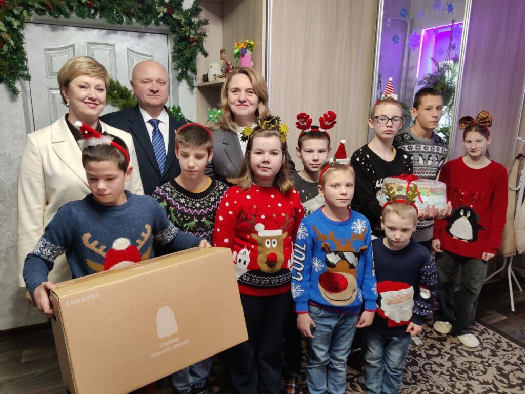 Депутаты подарили ребятам сладкие подарки и пылесос.