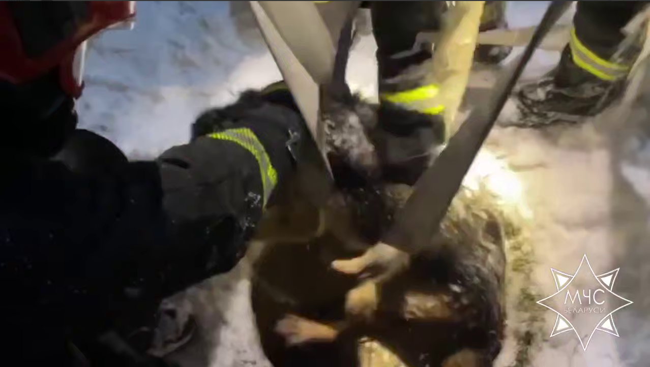 Прибывшие на место работники МЧС незамедлительно приступили к спасательной операции. Используя пожарные рукава, специалисты осторожно извлекли собаку из ловушки.