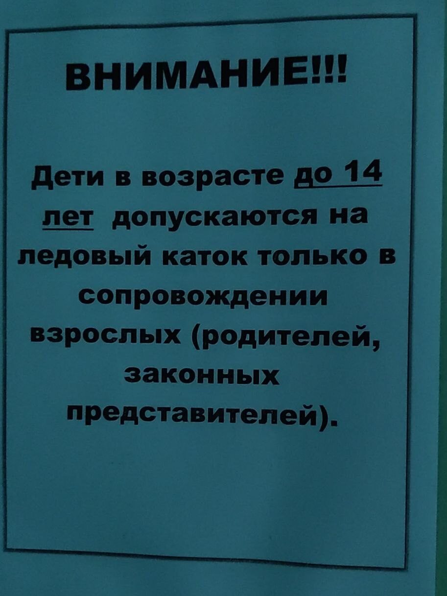 Важно: дети в возрасте до 14 лет допускаются на каток только в сопровождении взрослых!