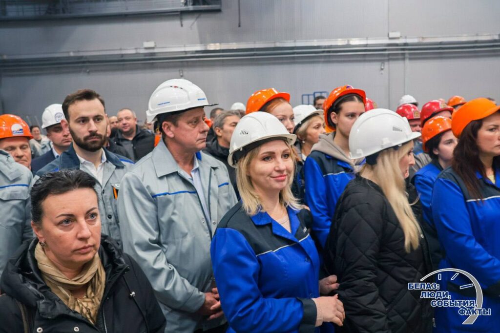 Эти люди стали первыми свидетелями того, как с новой конвейерной ленты сошел карьерный самосвал «БЕЛАЗ» грузоподъемностью 130 тонн.