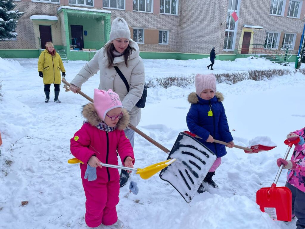 Снежный челендж подхватили даже маленькие горожане. Воспитанники детского сада №17 «Золотой ключик» вместе с воспитателем Алесей Климчук расчистили свою игровую площадку.