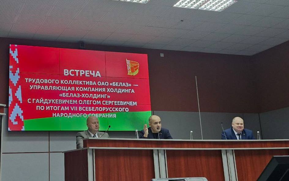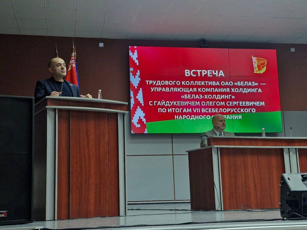 С трудовым коллективом БЕЛАЗа встретились заместитель председателя Постоянной комиссии по международным делам, председатель Либерально-демократической партии Беларуси Олег Гайдукевич и председатель Жодинского горисполкома Александр Цивако.