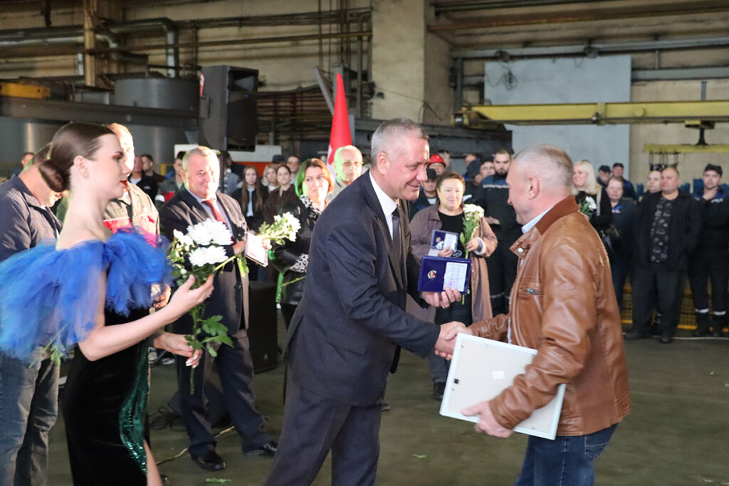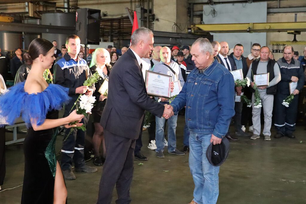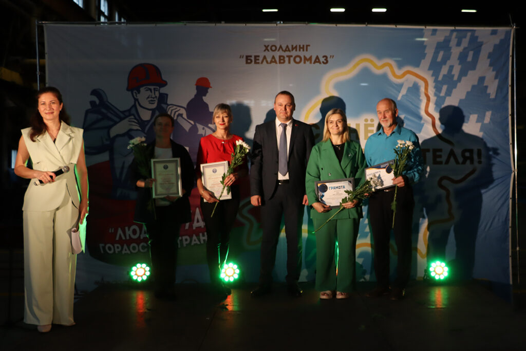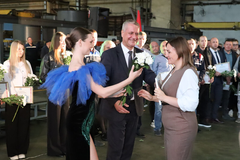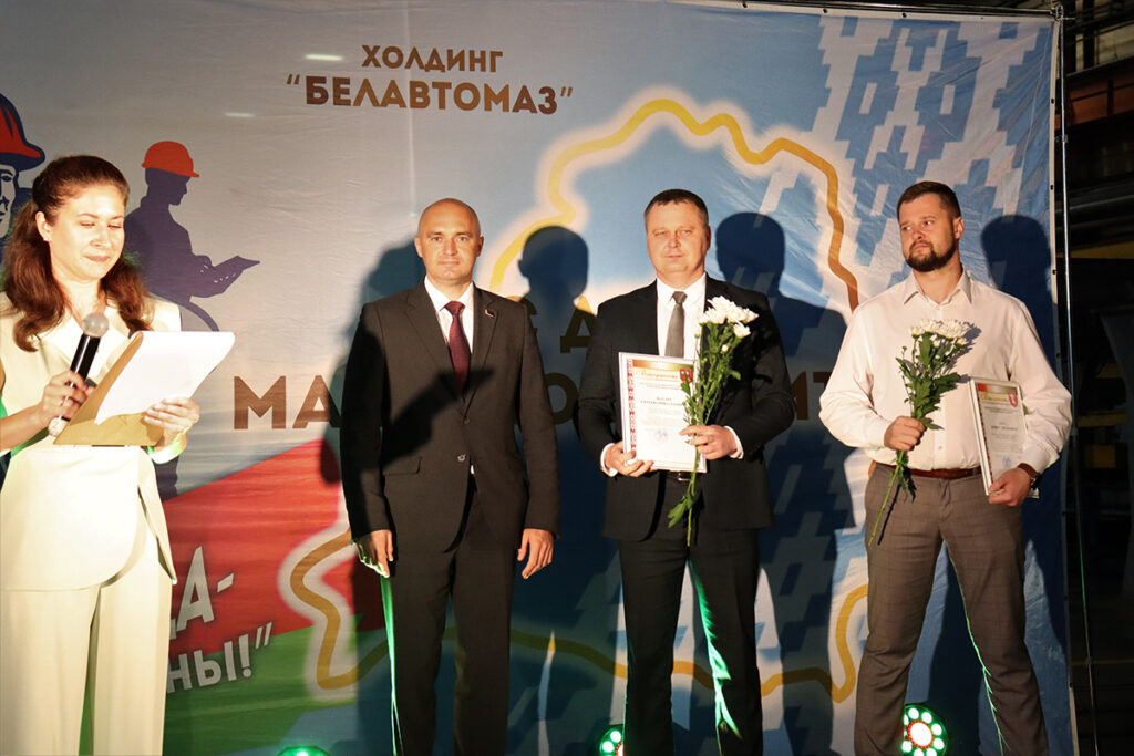 Заводчан за профессионализм и добросовестный труд поблагодарили заместитель генерального директора ОАО «МАЗ» – УКХ «БЕЛАВТОМАЗ» Геннадий Тумилович, заместитель председателя Жодинского горисполкома Александр Рубанцев, директор КЗТШ Виталий Бубелев, его заместитель Вячеслав Миськов и председатель профсоюзного комитета Сергей Волков. Они вручили и заслуженные награды.