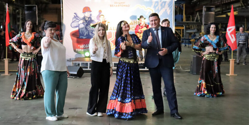 Праздничное настроение и незабываемые эмоции работникам КЗТШ дарили яркие выступления артистов, а специальным гостем праздника стал заслуженный артист Республики Беларусь Александр Солодуха.