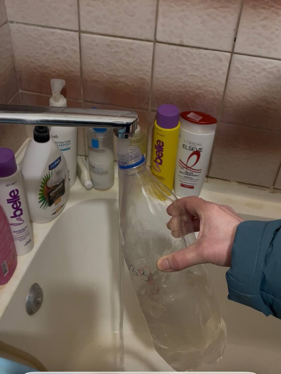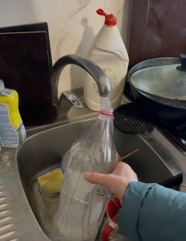 В квартире на третьем этаже нас встречает молодая мама с маленьким ребенком на руках. «Проблема периодически возникает, вчера вода была грязная, но сегодня вроде нормальная», – говорит Полина и приглашает нас пройти на кухню.
