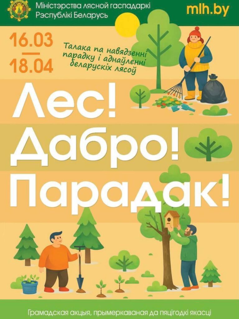 С 16 марта по 18 апреля каждый, кто любит природу, может присоединиться к акции «Лес! Дабро! Парадак!» и помочь лесхозам навести порядок в лесах и благоустроить территории.