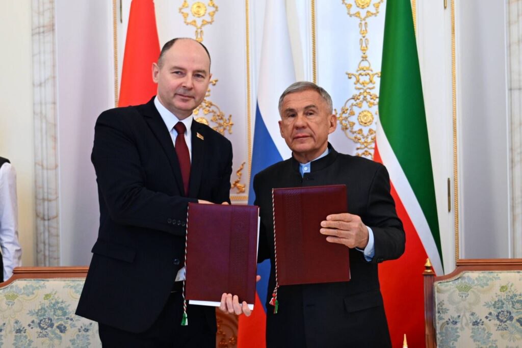 Свои подписи под документом поставили председатель Миноблисполкома Алексей Кушнаренко и Раис Республики Татарстан Рустам Минниханов во время приема в казанском Кремле, сообщили в пресс-службе Миноблисполкома.