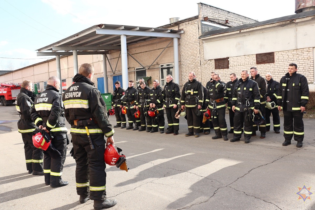 В одном из цехов открытого акционерного общества «Свiтанак» прошли тактико-специальные учения спасателей. Под руководством начальника отдела Олега Пашука спасатели отработали действия по ликвидации условного пожара в швейном производстве на втором этаже здания.
