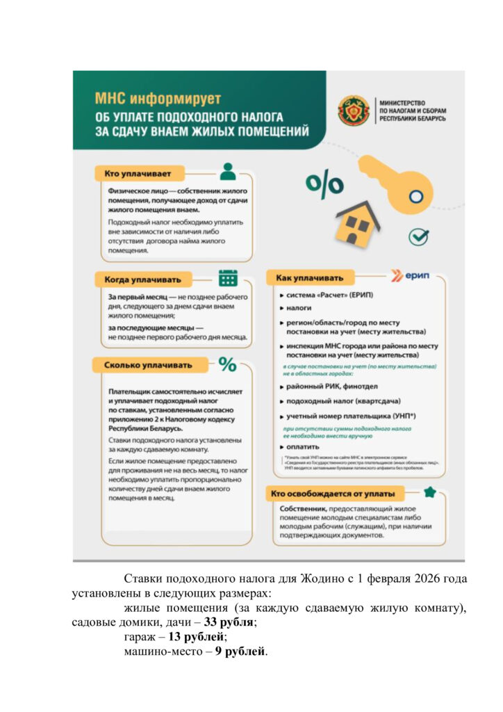 Ставки подоходного налога для Жодино с 1 февраля 2026 года установлены в следующих размерах: