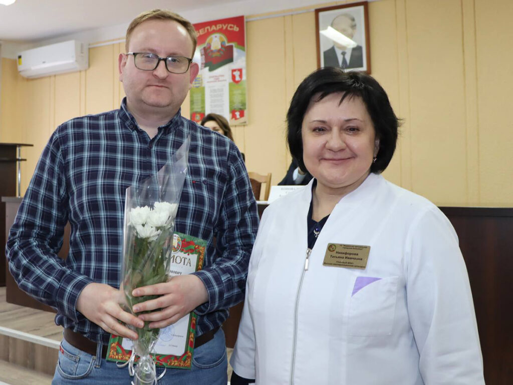 — Я благодарна вам за самоотверженный труд и за тот вклад, который каждый из вас вносит в систему здравоохранения нашего города, — обратилась к собравшимся Наталья Сушко. Она вручила Благодарности председателя горисполкома врачу-урологу хирургического отделения ЦГБ Игорю Голобурдо, врачу общей практики третьего отделения врача общей практики городской поликлиники Светлане Федоровой и заведующей отделением ультразвуковой диагностики ЦГБ Светлане Чермениной.