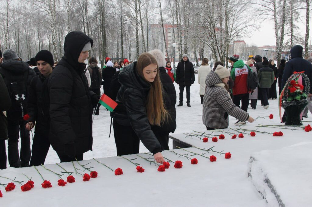 В этом году в Жодино приехал студенческий отряд «Багратион» исторического факультета БГПУ имени Максима Танка. Торжественный митинг состоялся в знаковом для каждого жодинца месте – у мемориала в честь матери-патриотки Анастасии Куприяновой.