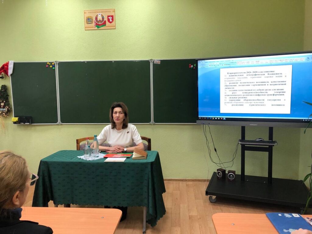 Участники Всебелорусского народного собрания активно делятся ключевыми идеями, прозвучавшими на собрании. С педагогами СШ №2 встретилась первый заместитель председателя горисполкома Наталья Сушко.