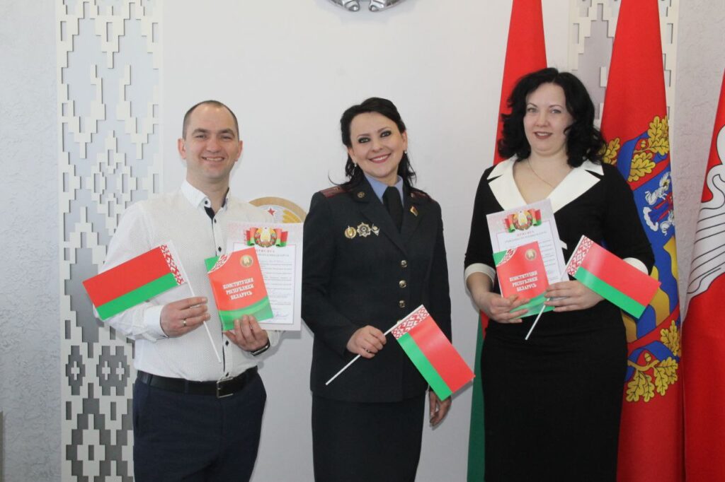 – Получение гражданства – это испытание для гражданина: кропотливый сбор и подача документов, выход из гражданства, которое у него имелось. Финишная прямая этого испытания – торжественное принятие присяги. Человек, который ее пересекает, понимает, что добился того результата, который перед собой ставил. Гражданство не только налагает определенные обязанности, но и наделяет правами, в том числе – участие в выборах и принятии других важных решений на благо страны, – пояснила начальник отделения по гражданству и миграции милиции общественной безопасности отдела внутренних дел Жодинского горисполкома майор милиции Татьяна Капитонова.