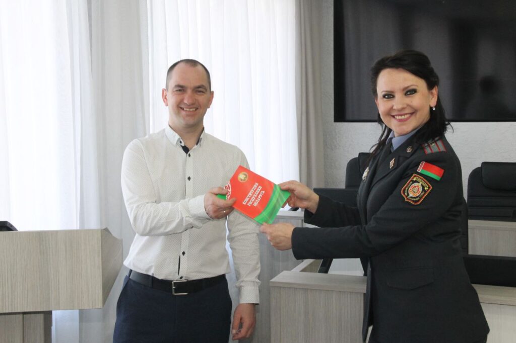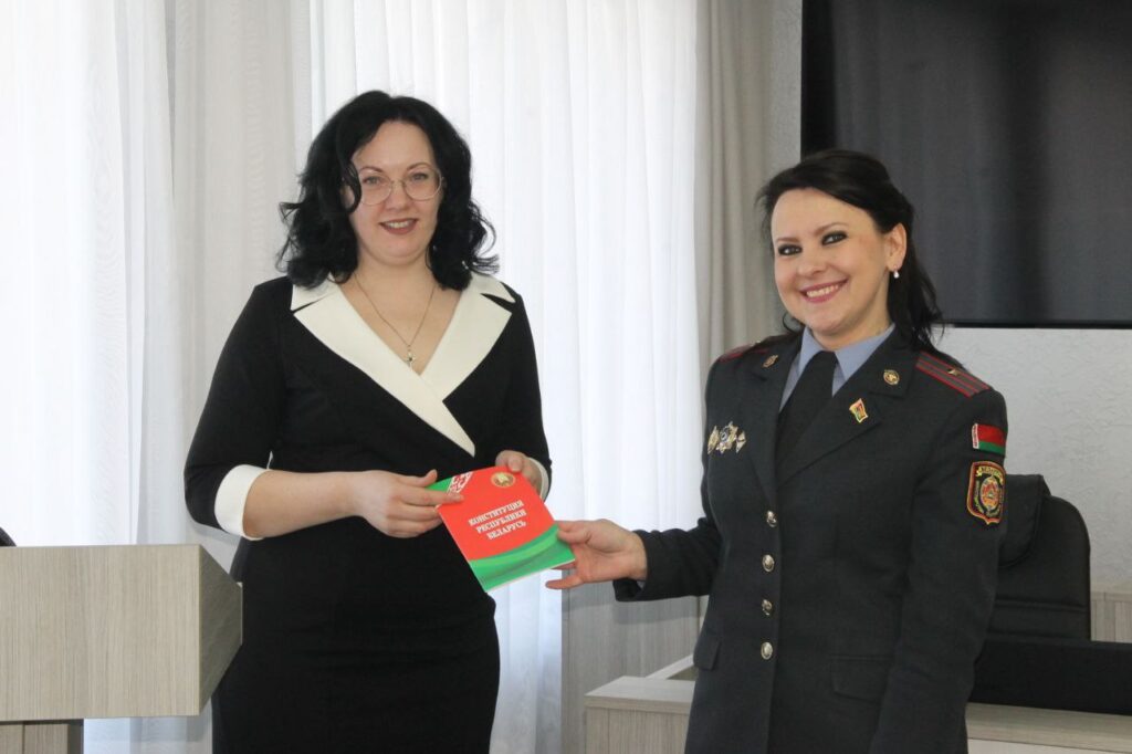 Новоиспеченным гражданам Татьяна Капитонова вручила памятные сувениры и главный Закон Республики Беларусь – Конституцию.