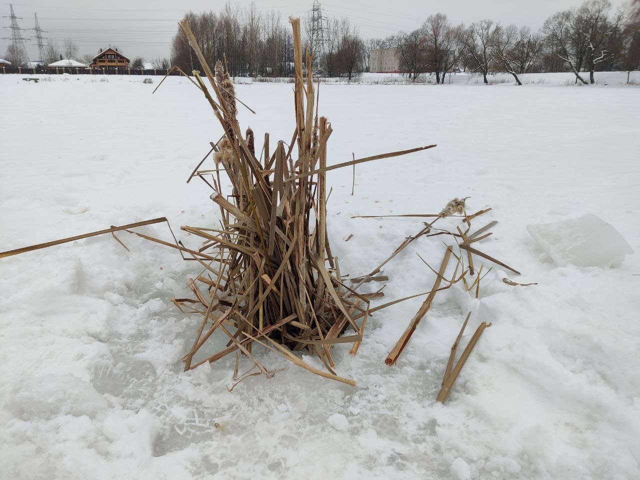 Камыши вставляются на случай, если лунка замёрзнет, то через полое растение кислород продолжит поступать в воду, — добавила Ольга Владимировна.