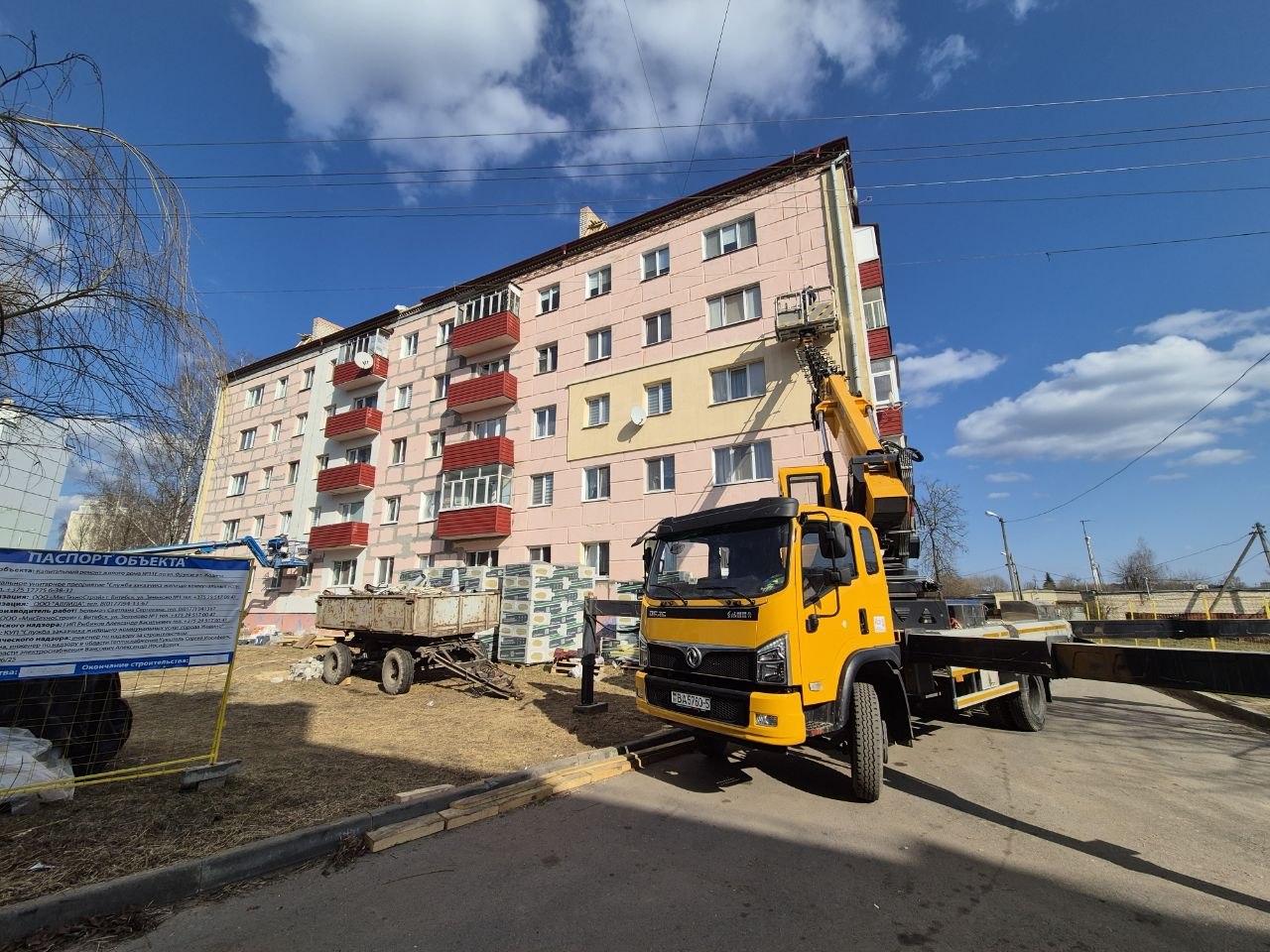 Дом старой постройки, поэтому капремонт здесь был необходим. Сейчас специалисты выполняют здесь фасадные работы – идет утепление стен изоляционной штукатуркой с заделкой стеновых стыков.