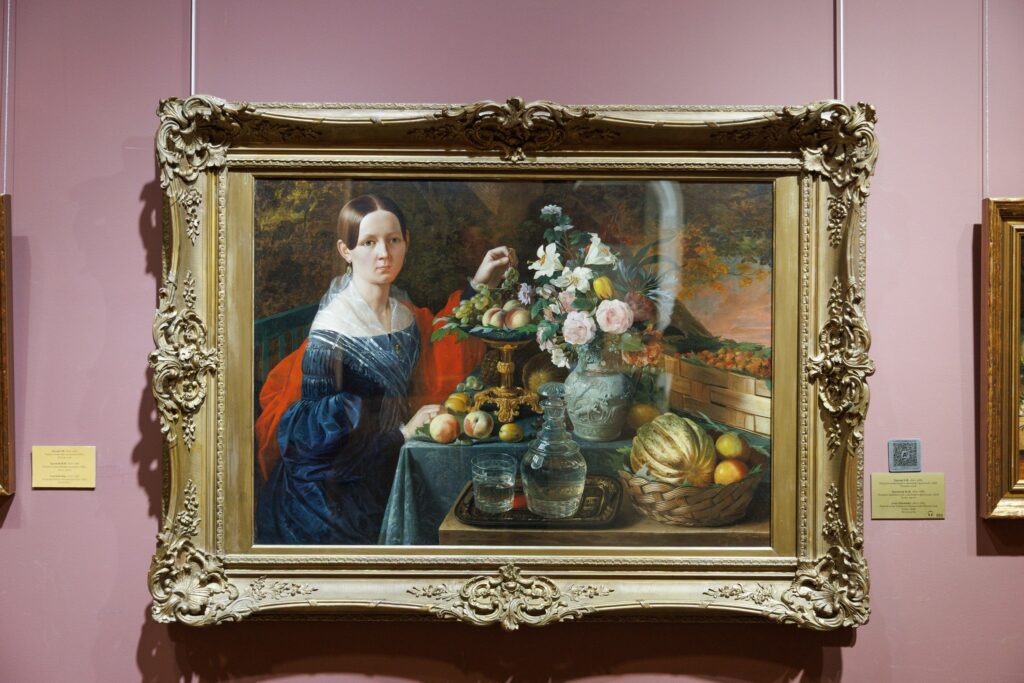 «Портрет неизвестной с цветами и фруктами» Ивана Хруцкого – одна из самых узнаваемых работ из коллекции Национального художественного музея, знакомая многим по открыткам, маркам и даже денежным купюрам. В диджитал-интерпретации зрители смогут рассмотреть картину в деталях и увидеть, как меняется выражение лица загадочной незнакомки, как она отрывает виноград, пробует его и поправляет цветы в вазе.