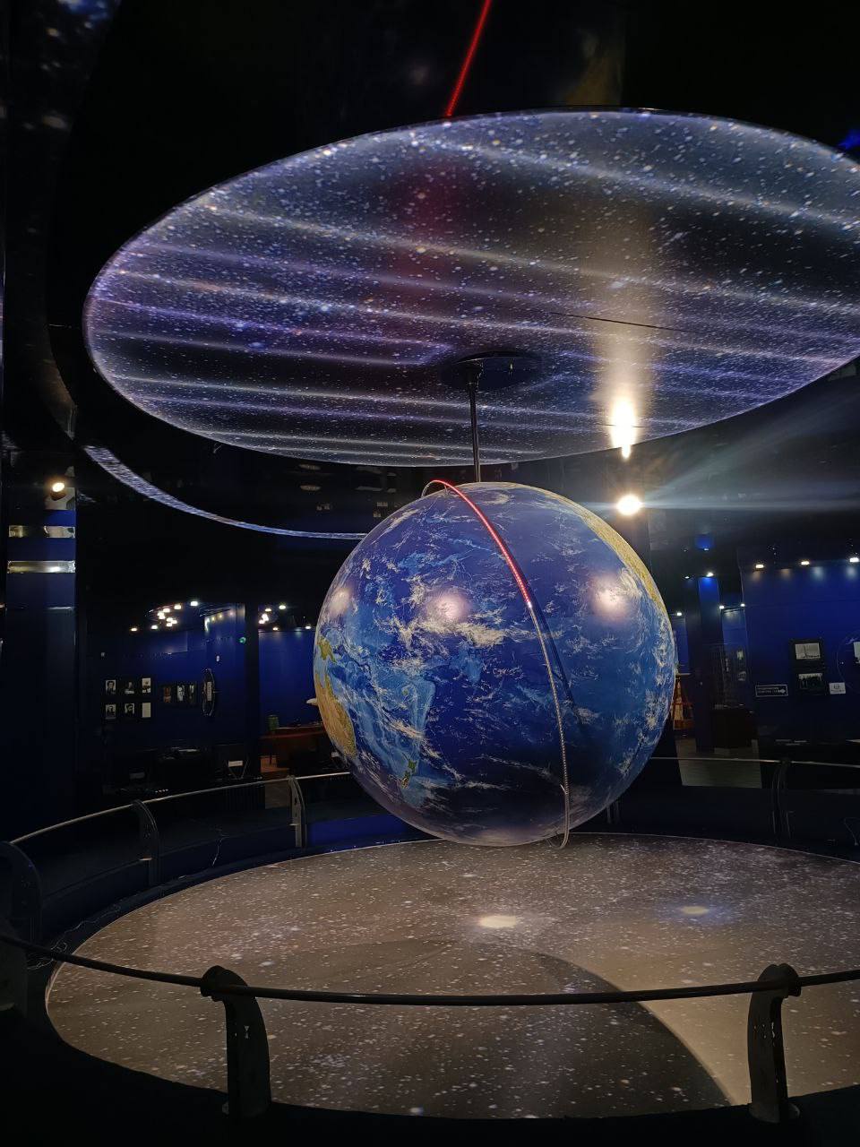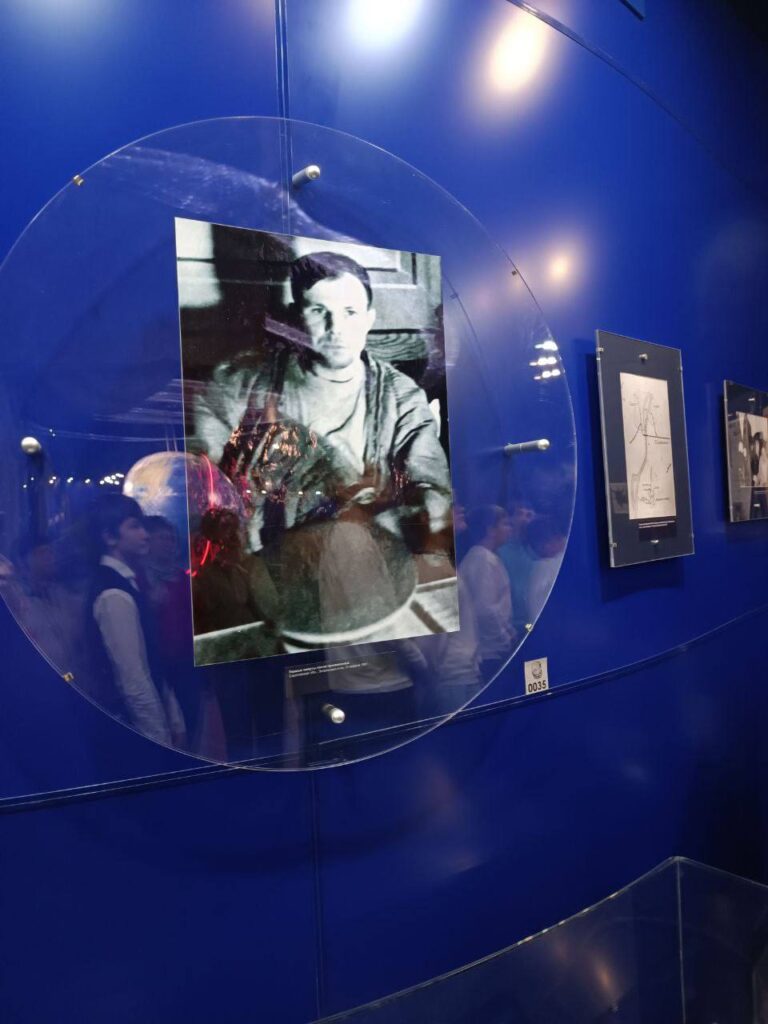 Одна из экспозиций Музея первого полета как будто перенесла всех в открытый космос: в центре большого зала находится земной шар, а вокруг него сияет красным цветом орбита полета первого космонавта.