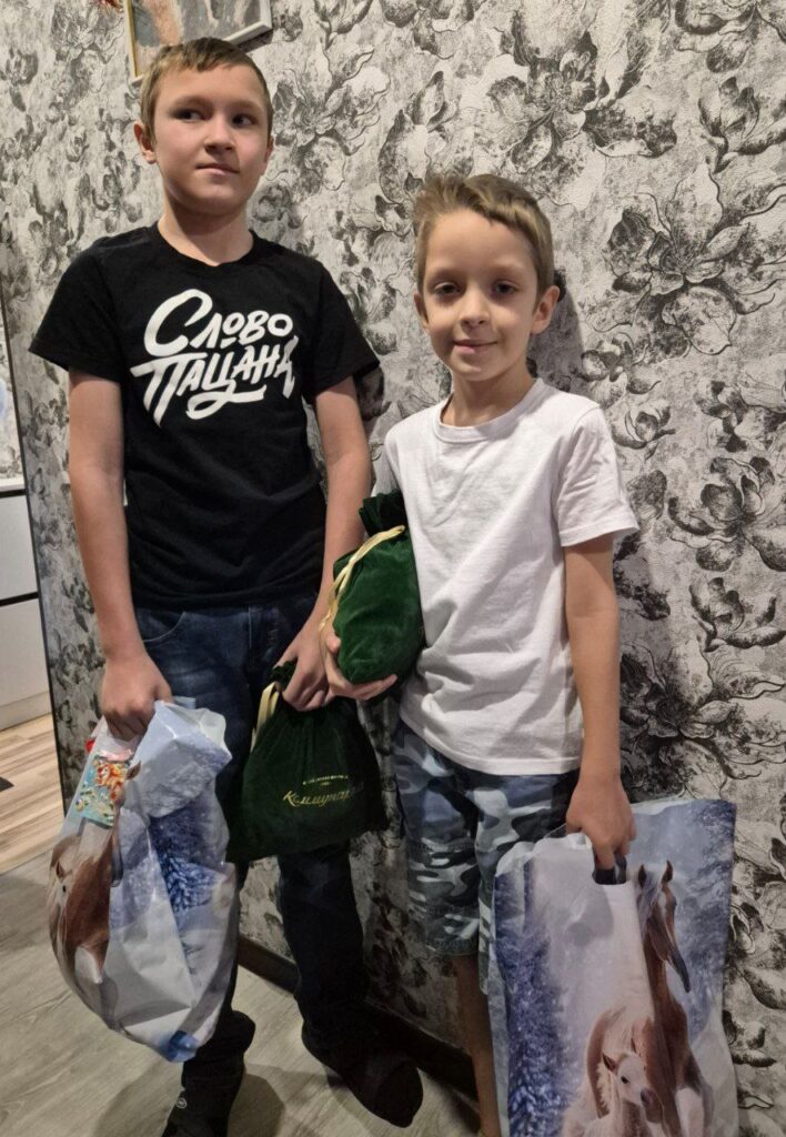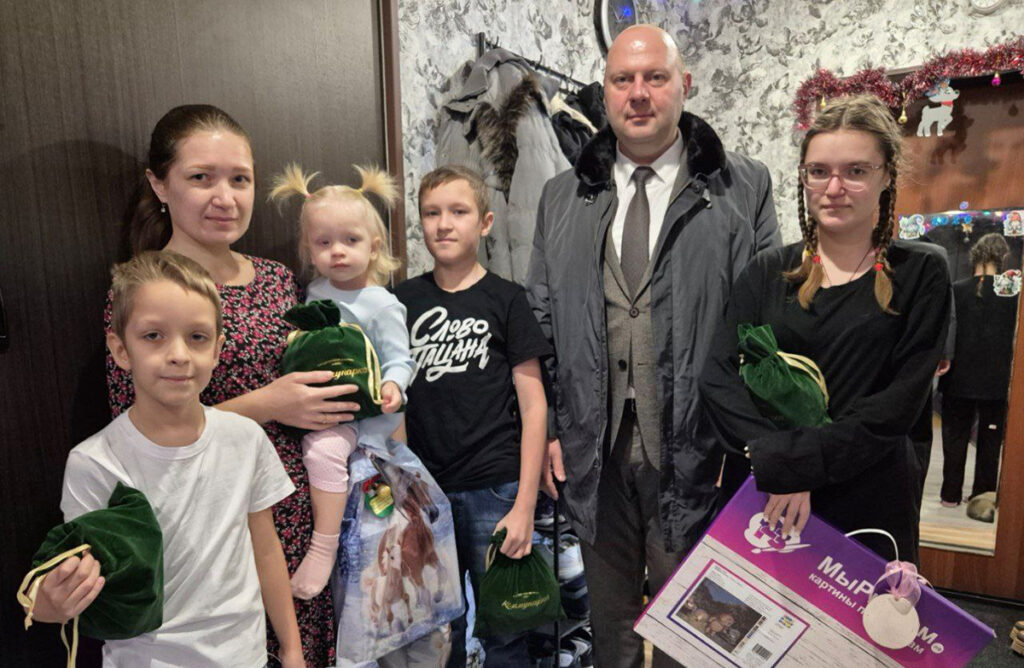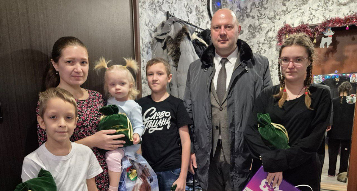 Ольга, Сергей, Максим, Матвей и Виктория получили подарки и сладости от главы города.