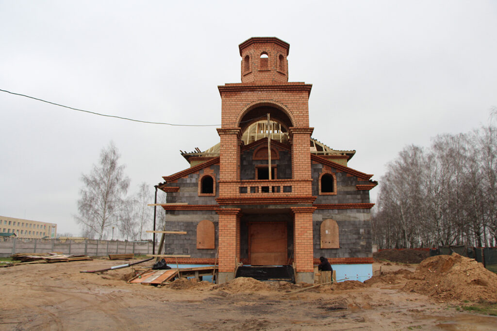 Чуть больше года назад епископ Борисовский и Марьиногорский Амвросий совершил чин закладки храма преподобного Сергия Радонежского. Архиерей освятил место будущего строительства, а позже в основание храма легли закладной камень и памятная капсула. Сегодня на этом месте уже возвышаются стены!