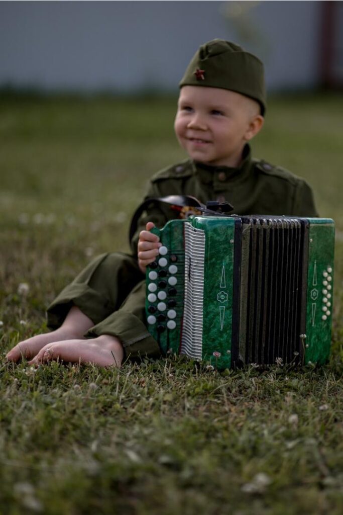 В образе военного с гармонью – Владимир Шиковец: «Пусть мирное небо всегда будет с нами, а мальчики наши его сберегут».