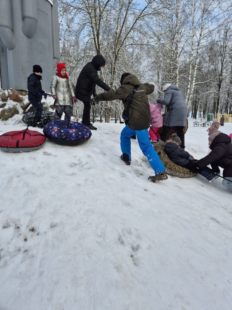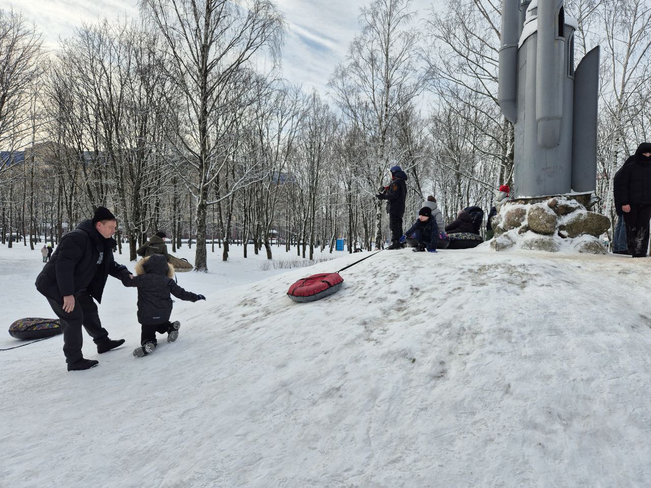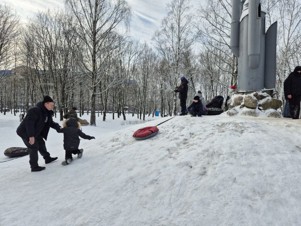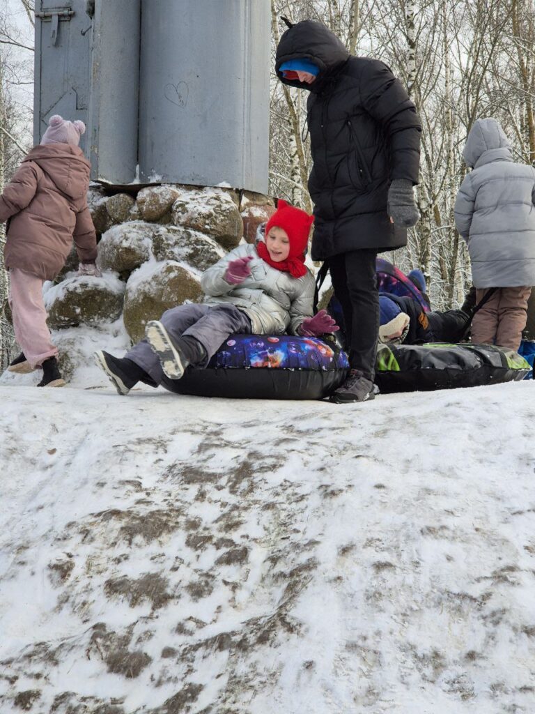 На горке ребята сегодня провели почти целый день. Вдоволь накатавшись на тюбинге и ледянке, они вооружились снеголепами и занялись укреплением снежной крепости.