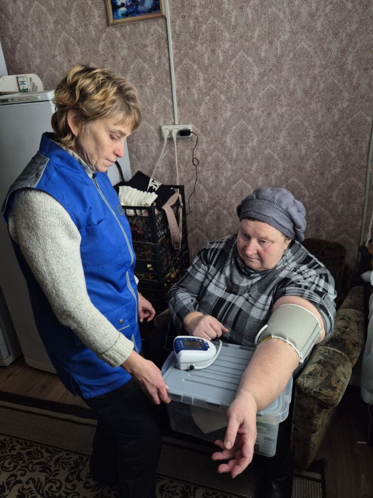 Вот и сейчас соцработник выкладывает на стол продукты, лекарства, после чего приглашает Валентину Васильевну измерить давление.