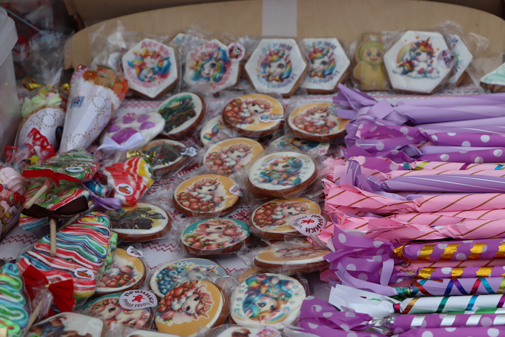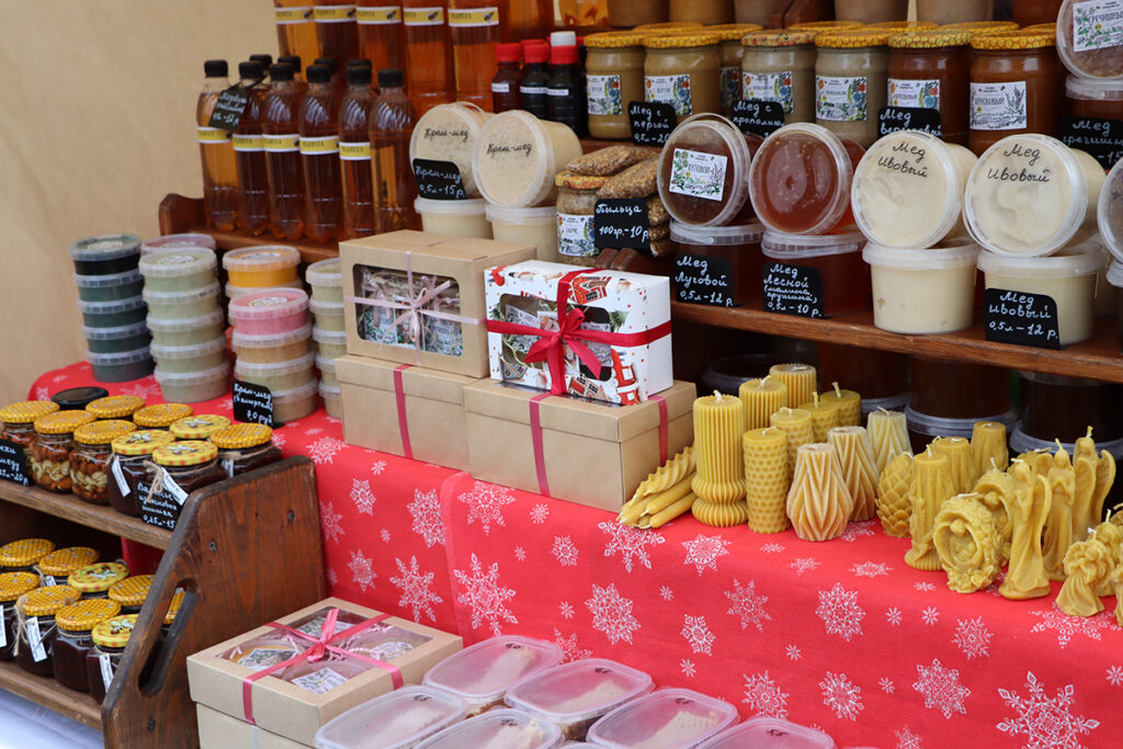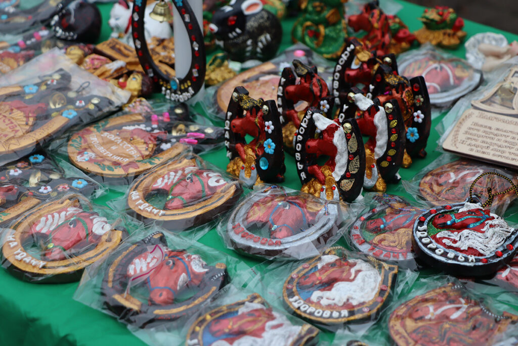 В палатках ремесленников можно было найти подарок на любой вкус: букеты из сухоцветов, разделочные доски, теплые шерстяные носки и варежки, зефир и конфеты. Особым спросом у горожан пользовались изделия с символом наступающего года – лошадью: фигурки, магниты, вязаные игрушки, подвески и имбирные пряники.